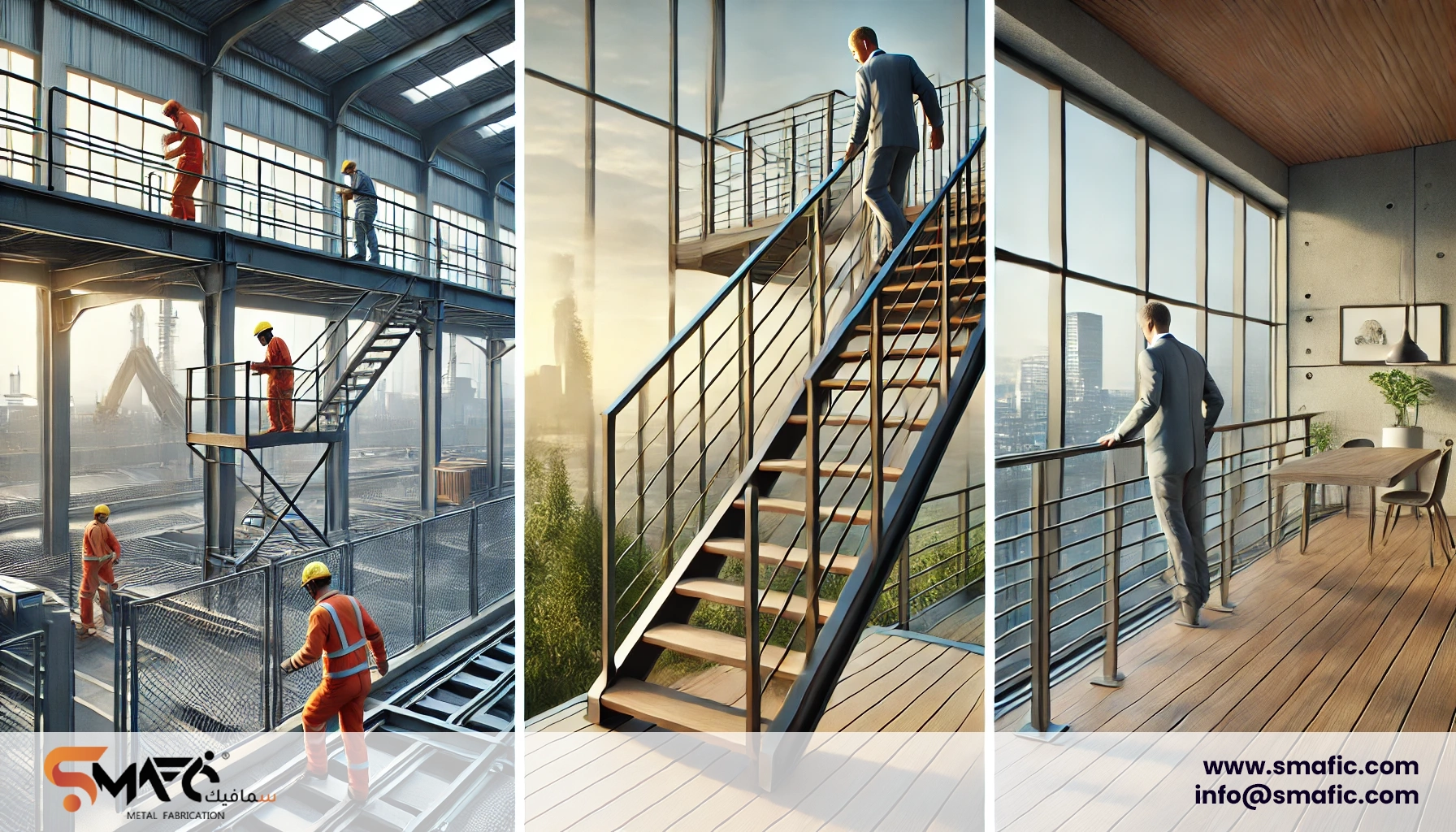- دعم إضافي في الأماكن المرتفعة: في المصانع أو الأماكن الصناعية، حيث قد يتواجد العمال على ارتفاعات عالية، توفر الدرابزينات المعدن دعمًا هامًا لهم أثناء التنقل أو العمل.