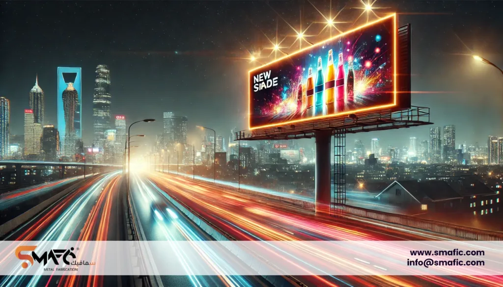 - لوحات الطرق الضخمة (Billboards): تُستخدم على الطرق الرئيسية للإعلان عن العلامات التجارية.